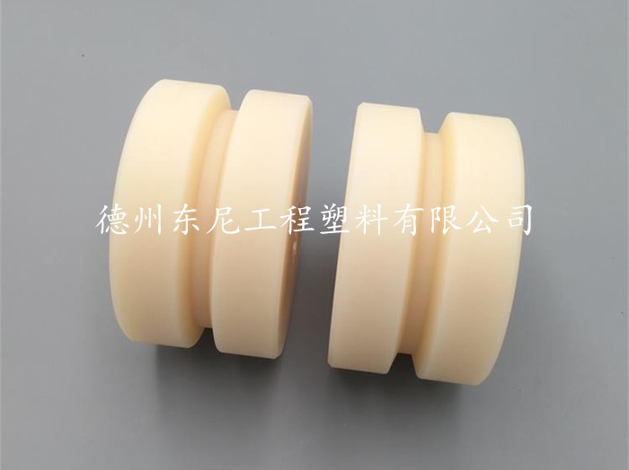MC尼龍是一種高輕度的澆鑄尼龍,內(nèi)含二硫化鉬(Mos2)超微粉末提高其潤滑性。其非凡的強度支承軸承的負荷大大高于其他工程熱塑塑膠。由于它的內(nèi)在彈性,非極性和極快的工作應(yīng)力釋放能力,不會產(chǎn)生永久的變形。MC尼龍耐磨,不但減少設(shè)備的總重,而且保護相配合的金屬表面。隨著移動式起重機和升降機設(shè)備應(yīng)用的增多,為了提高能力和移動性能,在新式設(shè)計中要求起重臂金屬滑輪和配重必須減重。而且,海洋勘測作業(yè)隊起重設(shè)備的防腐蝕零件的要求也逐步加強。多年來,重型起重設(shè)備的制造商和使用者一直在尋找新方法來提高鋼纜的使用壽命,減少在安裝滑輪上的磨損,早起方案包括在金腿滑輪涂敷彈性材料和在金屬輪轂上安裝這類材料的輪緣。